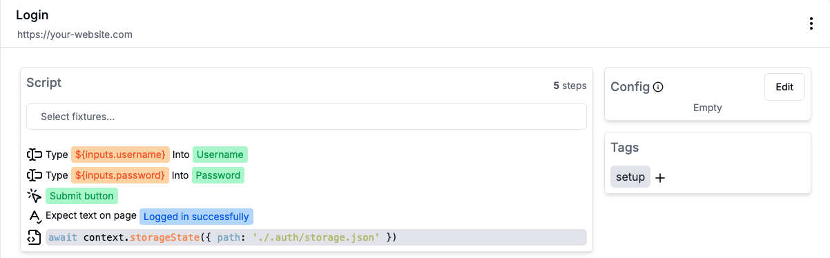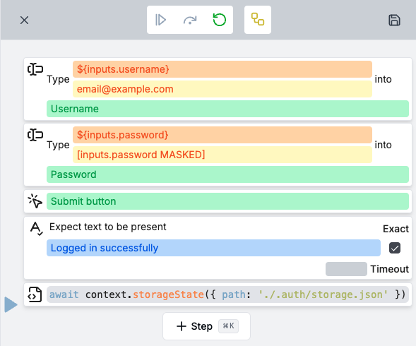 Launch UI app with npx inspecter app and create login test with js step at the end.